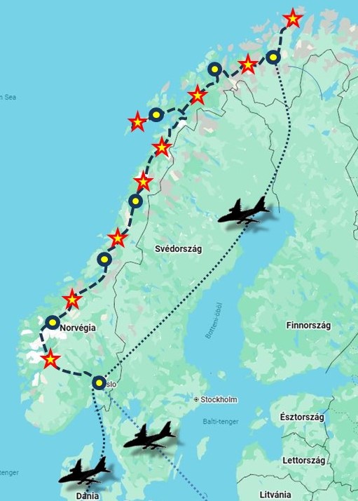 1. nap Budapest - Oslo: A norvég fővárosba repülővel érkezünk, és a város nevezetességeinek megtekintése mellett birtokba vesszük kamionnal érkező motorjainkat is, majd másnap kezdetét veszi az igazi kalandtúra!